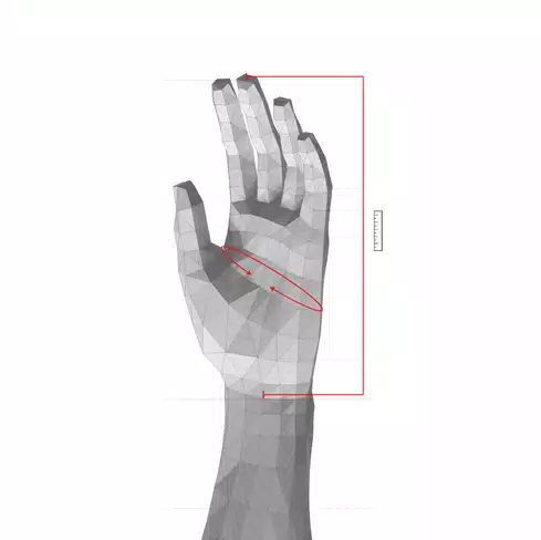 Pomiar dłoni przy wyborze rękawiczek uzyskuje się poprzez zmierzenie obwodu dłoni tuż pod kostkami.